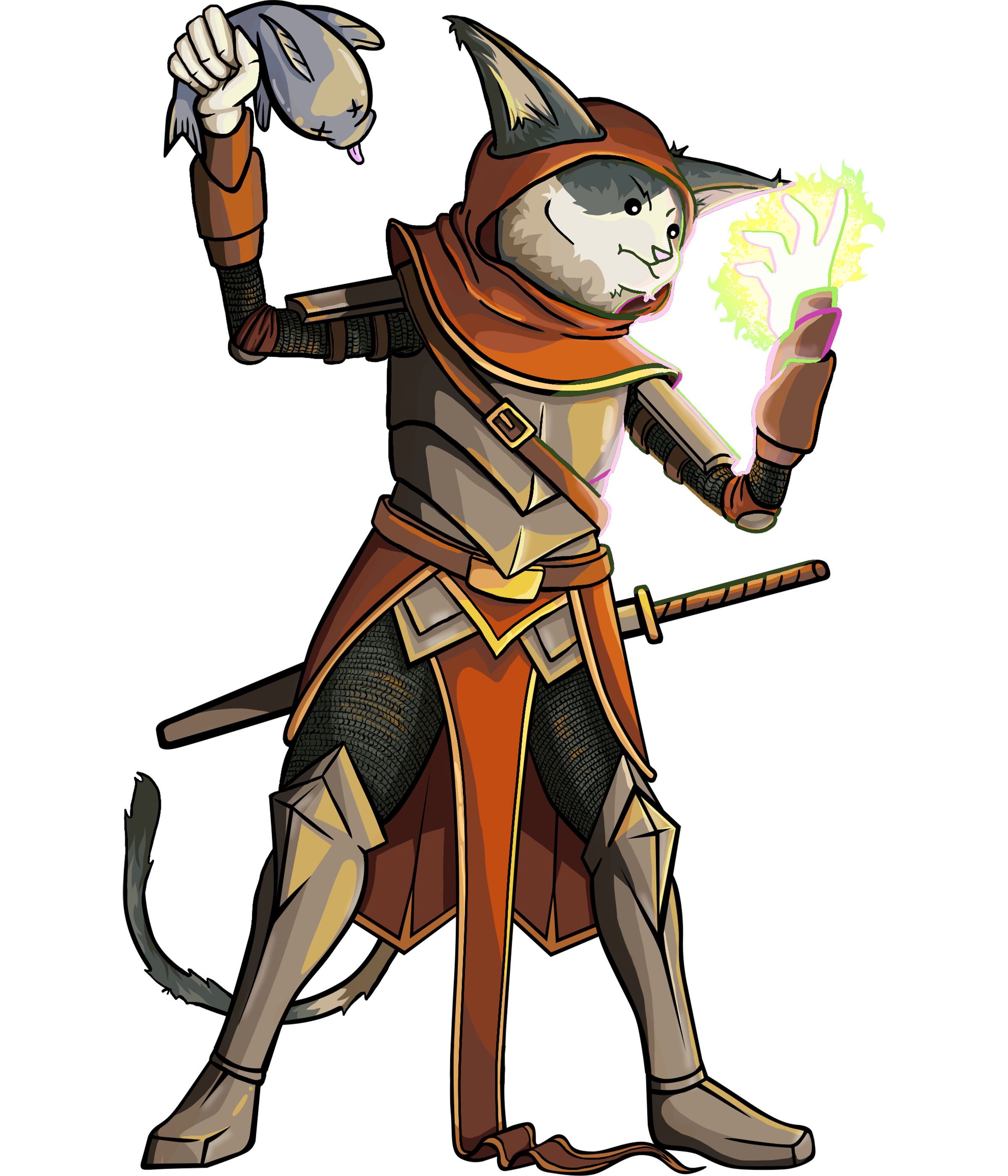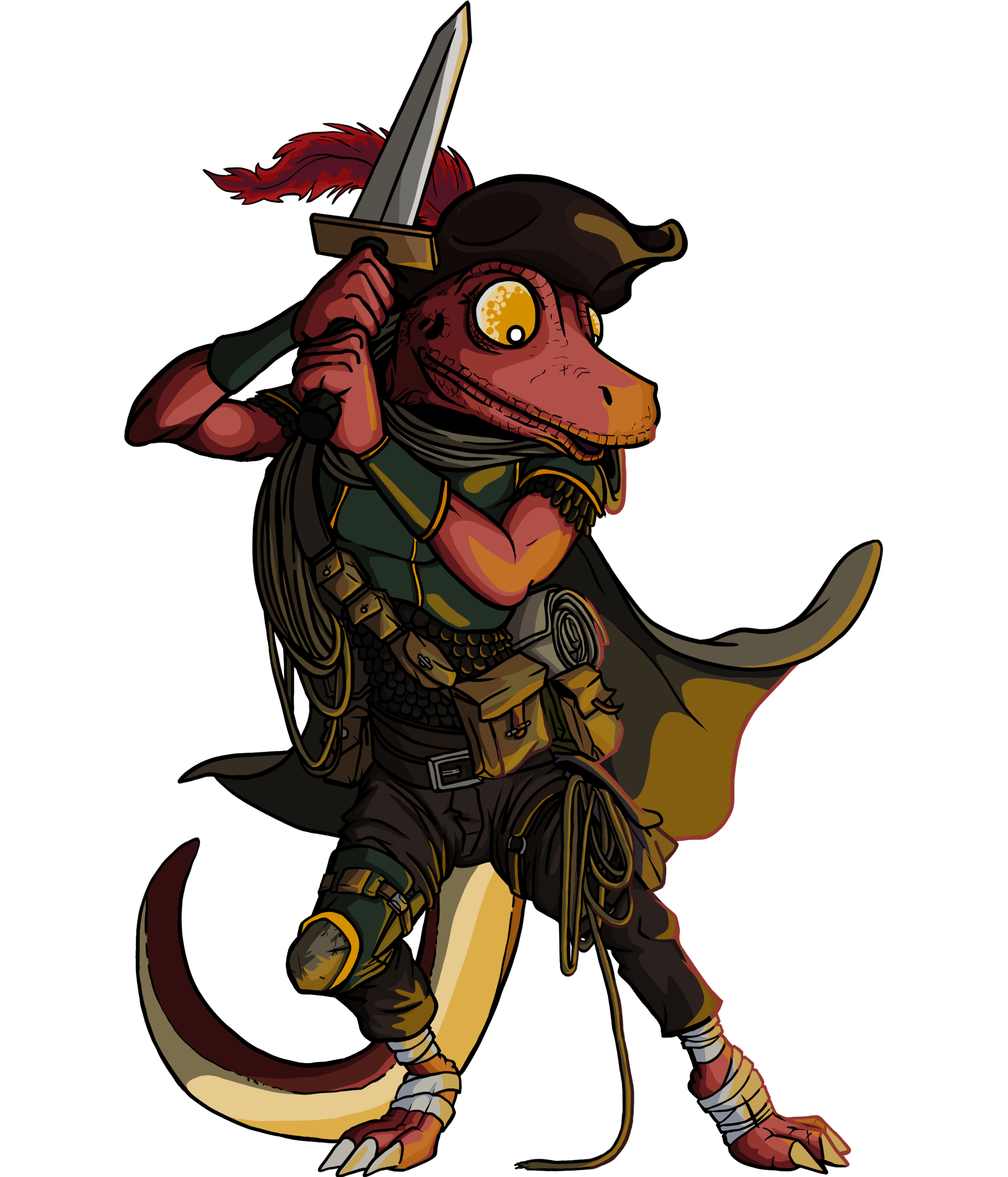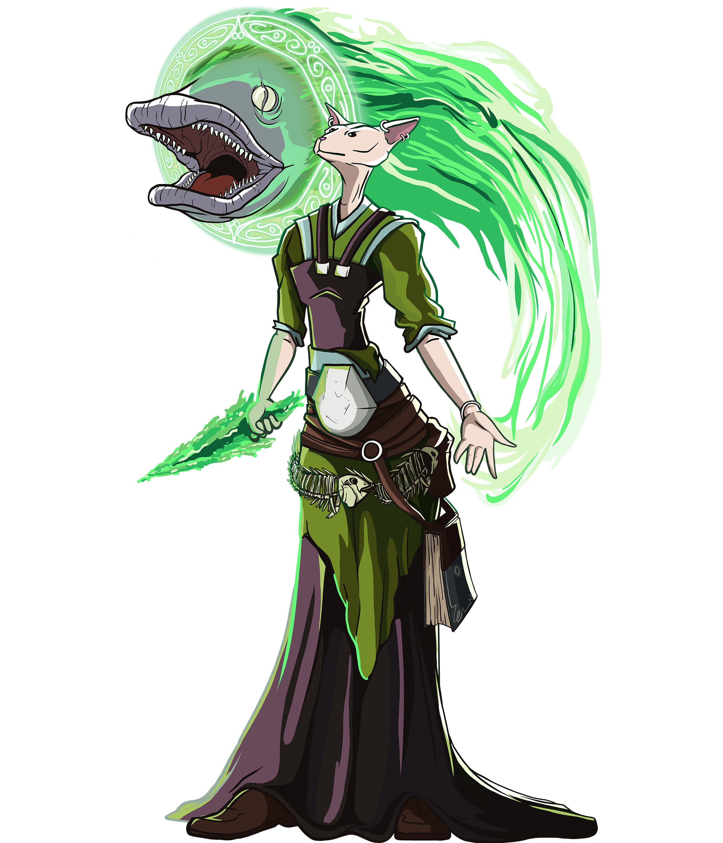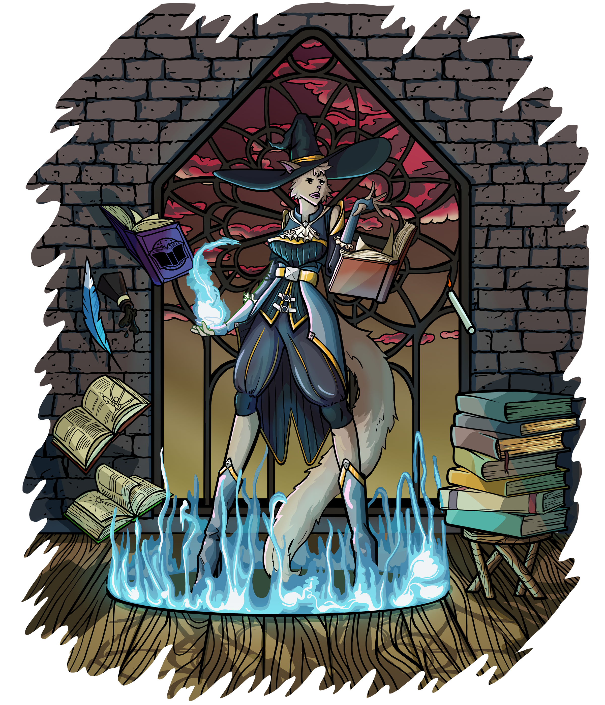 A collection of self-directed character illustrations spanning fantasy archetypes, creature design, and detailed costume work. Each piece was built around a clear visual identity: